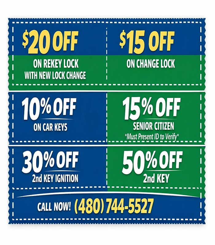 Locksmith Phoenix Inc is proud to offer exclusive savings for homeowners, drivers and business owners across Phoenix AZ. Take advantage of our limited time locksmith coupon and enjoy professional lock repair, car key assistance and emergency lockout services at a reduced price.